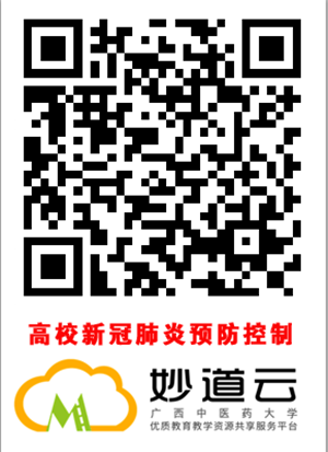 2020年4月8日-21日期间,全校师生员工通过线上教学观看疫情防控知识,观看网址https://miaodaoyun.gxtcmu.edu.cn/mod/hvp/view.php?id=362,或扫描通知下方二维码进行观看。