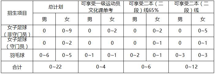 (二)招生计划:我校2021年高水平运动队招生总计划为22人,按招生项目具体名额分配如下: