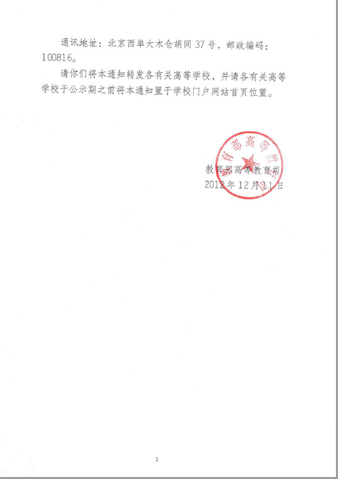 关于转发《关于对2012年“国家高层次人才特殊支持计划”教学名师(高等学校)候选人的进行网上公示的通知》的通知 来源:宣传部 作者:宣传部 日期:2012-12-14 点击数: 次 分享到: 打印正文 关闭本页