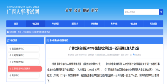 广西2025年区直事业单位统一公开招聘工作人员公告(星空彩票老版本下载设8个岗位共招23人)