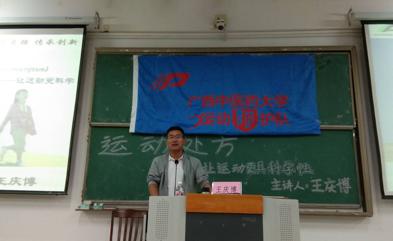 为使同学们进一步了解运动处方和其作用,以及如何运用运动处方进行科学健康的运动,11月1日晚,由王庆博老师主讲的以《运动处方――让运动更具科学性》为主题的知识讲座在仙葫校区教学楼1-301举行。