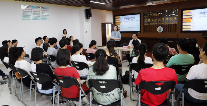讲座前方晓义教授在公共卫生与管理学院与我校师生进行沙龙活动