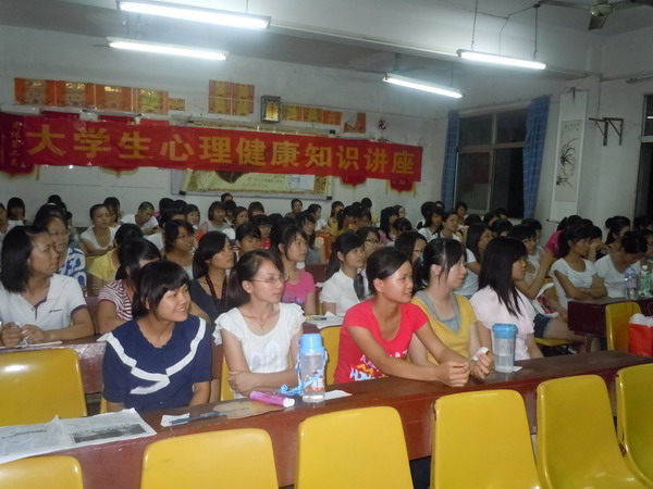 为了响应学院心理健康宣传月的号召,护理学院于2011年6月8日19:30在东葛校区501教室举办了主题为:“呵护心灵拥抱生活”的心理健康讲座。我们很荣幸邀请到余方教授作为本次活动的主讲嘉宾。参加此次讲座的领导老师有:广西中医学院护理学院学工办主任许凤琼老师。此外分团委学生会代表及各班级代表约100人也参加了此次讲座。