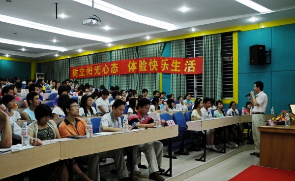 5.25大学生心理健康节,活动丰富,内容精彩,一个属于大学生的日子。为了给同学们寻找心灵解压的良方,拥有一个健康的心理,2011年6月9日晚,由广西中医学院学工处主办,人文社科学院承办的第六届“5.25大学生心理健康节”知识讲座在西梯一教室举行,学工处冼锦华处长、高职院邓远美院长、人文社科学院韦兆钧副院长及学工处、各二级学院老师出席了本次讲座。