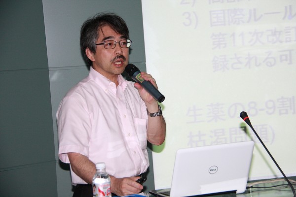 稻川裕之副教授首先对日本的中医药发展现状和前景做了介绍,日本的医药品整体市场价值为6.5兆日元,其中中医药为1131亿日元,中医药的市场份额到2015年预计将达到2000亿日元以上。随着日本社会的老龄化进程和日本药事相关法令的订正,中医药的前途将日益光明。但日本的中医药产品原料来源的80-90%均来源于中国,其资源枯竭问题也日益受到重视,因此中医药科技的进步和替代药物的发现将起到决定性的作用。在讲座的第二部分,稻川先生对小麦发酵后的成团泛菌提取物的自然免疫活化作用及其对神经内分泌和免疫系统的调节作用做了详尽的介绍,同时对其在免疫活化剂开发、癌症治疗、烧伤治疗、水产饲料、皮肤护理和化妆品开发等方面的广泛用途作了介绍。在讲座的提问交流环节中,骨伤学院周红海院长率先用英文向稻川先生提问,在场的老师和同学也纷纷就讲座内容向稻川先生或用中文或用英文进行提问,基础医学院肖健博士对部分同学的免疫学问题做出解答,药用植物园首席专家宋采教授也对讲座中涉及的神经免疫问题与稻川先生进行了深入探讨。双方的探讨和交流进行得热烈深入友好。