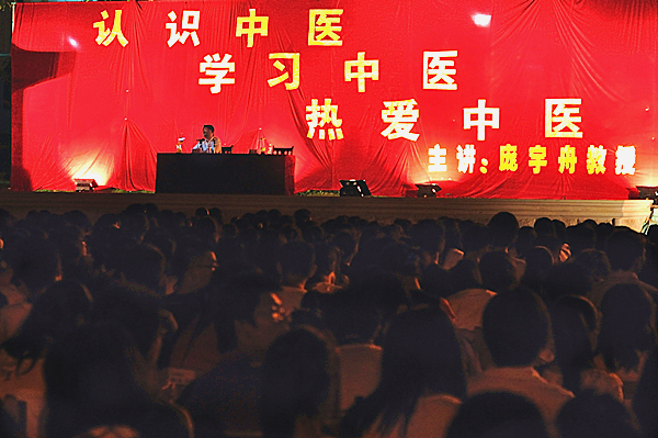 10月11日、12日晚,庞宇舟副院长莅临赛恩斯新医药学院,为1700多名2011级新生做了入学教育专题讲座。此次讲座的主题为“认识中医 学习中医 热爱中医”。赛恩斯新医药学院党总支书记徐方明主持讲座。