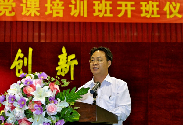 11月8日晚, 广西中医学院党委副书记项光谋教授出席赛恩斯新医药学院第十期入党积极分子培训班开班仪式,并为入党积极分子和2011级新生作专题讲座。赛恩斯新医药学院党总支书记徐方明致辞,副院长叶绘晟主持开班仪式,全院共有2000多名师生参加开班仪式并聆听讲座。