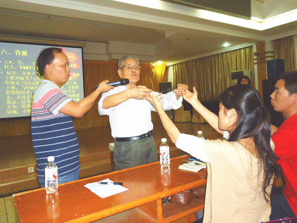 为传承与创新祖国优秀的中医药文化、成就中医人的中医梦,5月8日晚上,校老科技工作者协会、老教授协会与离退休工作处、校团委联合在明秀校区大学生俱乐部举办 “教授•博士” 学术论坛,协会会长刘钧超教授;副会长及离退处处长韦海英;离退处副处长贺西南莅临了讲座现场,共有150多名学生聆听了讲座。广西名老中医、协会会员王登旗教授主讲了《指针疗法与自我保健》,王教授把从医五十多年积累的宝贵经验,毫无保留地传授给学生,通过现场演示,师生互动提问,生动地为大家展现了一堂中医治疗与中医保健课。