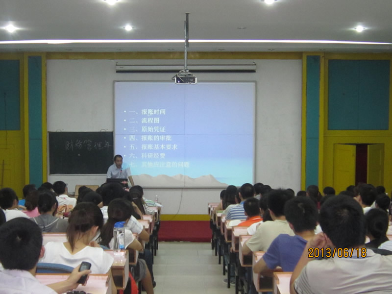 2013年6月18日晚,由星空彩票老版本下载研究生学院和星空彩票老版本下载财务处联合主办、研究生会承办的《财务报账基础知识专题讲座》在我校明秀校区西梯一教室隆重举行。讲座由校财务处副处长韩若斌主讲、研究生学院方卓院长主持。
