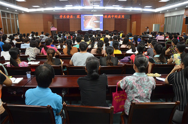 6日晚上,医院专家刚刚赶到容县,马上来到容县人民医院开展学术讲座,面对面与全县各级医院技术骨干进行学术交流。外七科莫安胜教授主讲“主动脉夹层的手术治疗与围手术期中医药调理”、外二科庞黎明主任主讲“腹腔镜技术在结直肠疾病的应用”。二位专家以精湛的技术水平和渊博的学识,使培训讲座深入浅出,精彩纷呈,来自容县各地300多名医疗技术骨干反响强烈,培训后大批基层医师拥上讲台向二位专家讨教,基层医师们感慨地说“很久没有听到那么精彩的讲课了”。