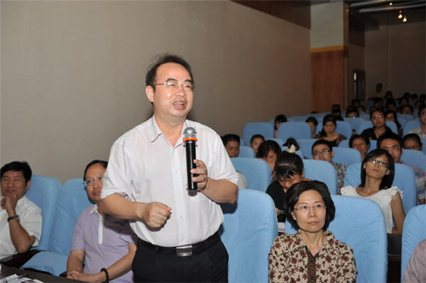 卢健棋副院长作了总结,他首先感谢周树锋教授的精彩讲座,认为这个讲座的信息量很大,内容很丰富,转化医学是目前科技界关注的焦点。周教授以自身的科研经历和日本汉方小柴胡汤的成功转化为例,阐述了转化医学和技术成果转化的方法和重要性,让我们充分认识到了转化医学作为基础研究通向临床应用的桥梁,以及对人民健康、社会福祉具有的重大意义。而周教授系统介绍的南佛罗里达大学在科研管理,以及医院临床的重点学科建设、人才培养等各方面情况,对我们很有借鉴和学习的地方。其在谈及人生成功要素时指出“语言能力、健康体魄、宏图大志”是一个人成功的三大要素,对我们很有启发。他最后说,总之,听了周教授的讲座,我们收获很多,对为我们以后如何做好科研、临床工作和如何做人,享受人生都有很重要的启发和借鉴之处。