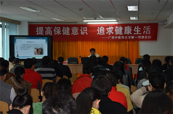 2013年11月21日上午,应南宁市广播电影电视局邀请,一附院康复科、肺病科、肿瘤科三位专家来到南宁电视台,举办主题为“提高保健意识 追求健康生活”的健康知识讲座。南宁电视台干部职工100余人参加了讲座,讲座由南宁市广播电影电视局常务副局长王庆主持。