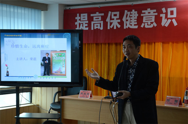 肿瘤科主任荣震教授以“珍惜生命,远离癌症”为题,从癌症十大症状到癌症患者的体质特点,再到癌症形成原因等方面进行了讲解、分析,然后从改变日常生活习惯、饮食特点对防治癌症提出实用性的建议。