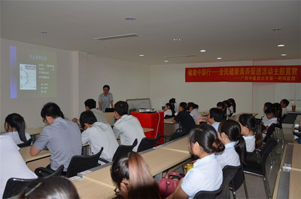 7月29日下午,应广西区机电设备有限责任公司邀请,一附院心血管二区副主任张以昆副教授前往南站大道汽车广场弘天汽车公司,为该公司50多名职工进行了一场主题为“心血管疾病的防治”的健康知识讲座,受到员工的热烈欢迎。