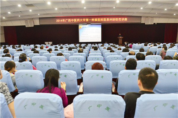 为切实防范医疗纠纷,提高医疗质量,确保医疗安全,构建和谐医患关系。2014年11月20日下午,一附院在多功能学术厅举办了医患纠纷防范专题讲座,讲座由广西医学会黄波夫教授主讲,主题为“从个案谈医患纠纷防范”。