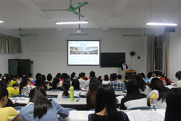 11月为我校科技文化活动月,为彰显瑞康临床医学院在科技文化活动中的特色,紧跟时代步伐,深入领会李克强总理提出的“互联网+”行动计划精神,同时调动学院同学参加第二课堂的积极性,2015年11月22日晚,瑞康临床医学院团总支、学生会在明秀校区西A—8教室成功举办“互联网+医疗”学术讲座。瑞康临床医学院信息宣传部夏哲璇老师为主讲人,学院近200名学生积极参加本次讲座。