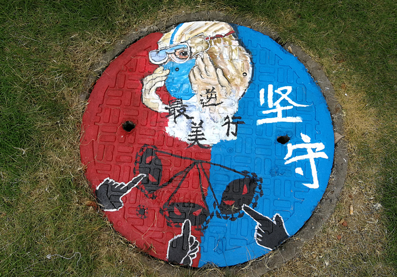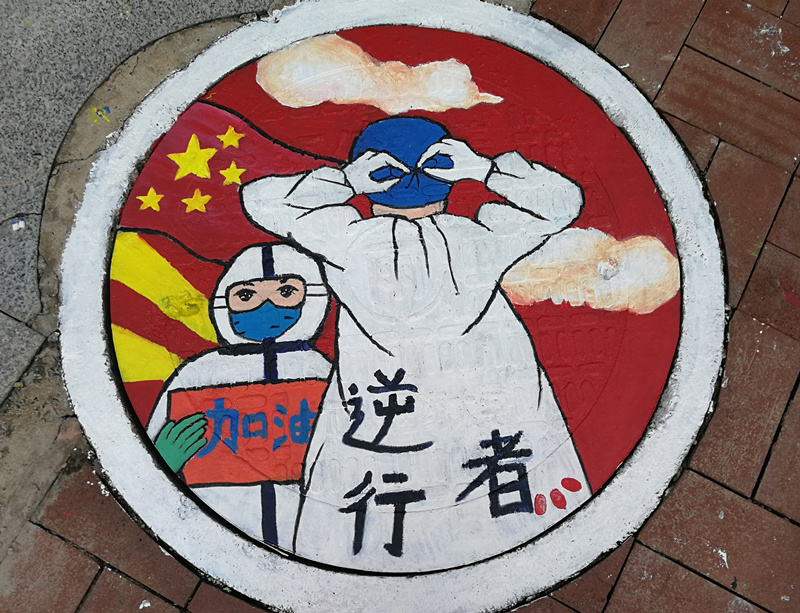 井盖挥豪传情 致敬白衣天使 我校举办首届校园井盖涂鸦大赛