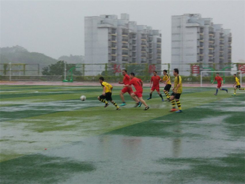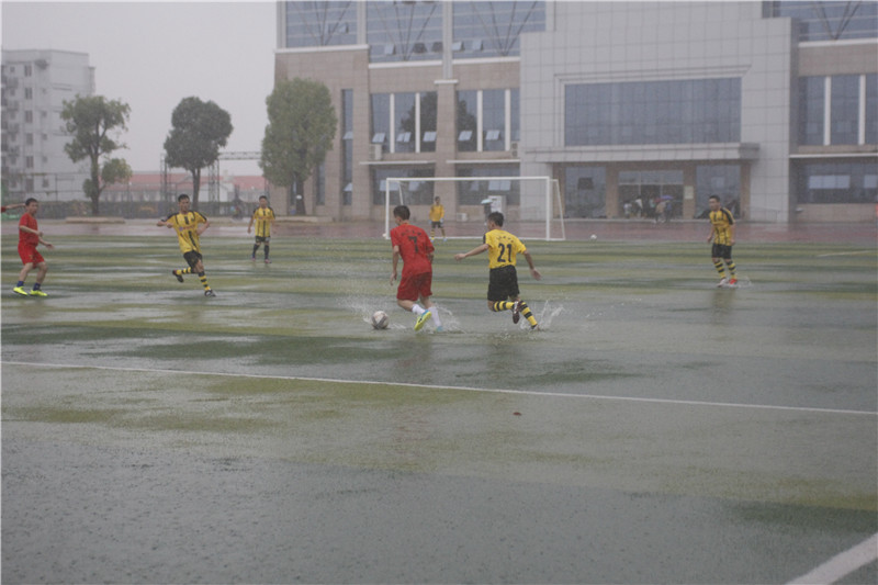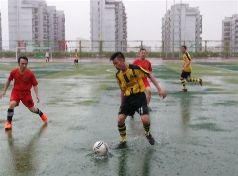 雨中的足球场地面潮湿,但这并不影响球员们的比赛热情。风雨中,他们传球、带球过人、射门,这一系列动作看起来都是那么的连贯、轻健,丝毫不为渐大的雨势所影响。这小小的足球在这风雨交加的赛场上更具魅力。双方队员精湛的脚法、完美的盘带、犀利的射门以及精彩的配合将比赛推向了高潮,足球场边的队员、观众亳不吝啬地为场上球员们献上最热烈的掌声及最高亢的欢呼。