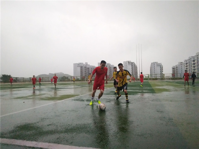 2016年10月19日下午四点三十,基础医学院与研究生学院之间的足球赛于广西中医药大学仙葫校区足球场进行,双方球队队员在雨中奋力角逐,无所畏惧,展现出了他们这群热血男儿的阳刚之气。