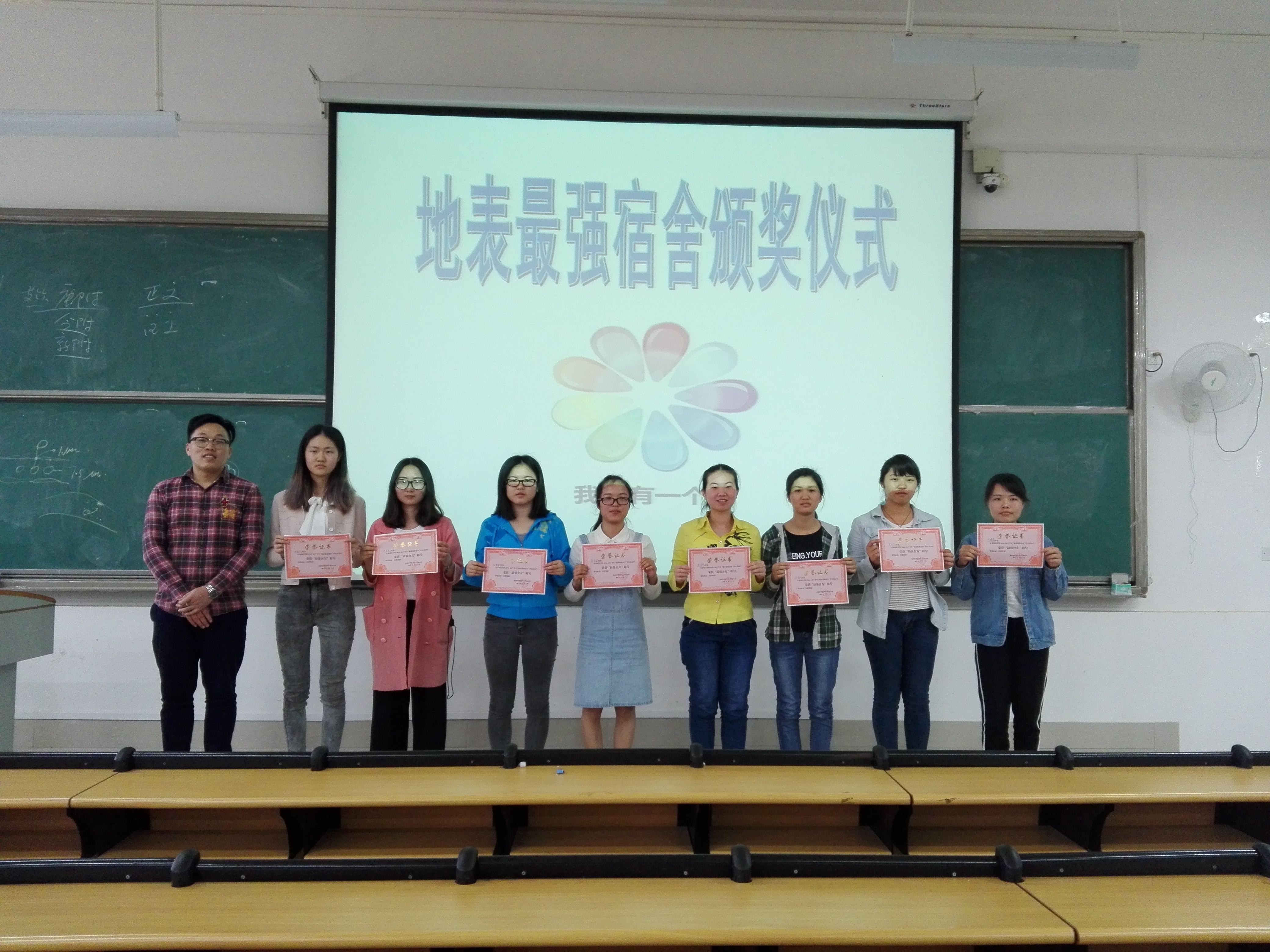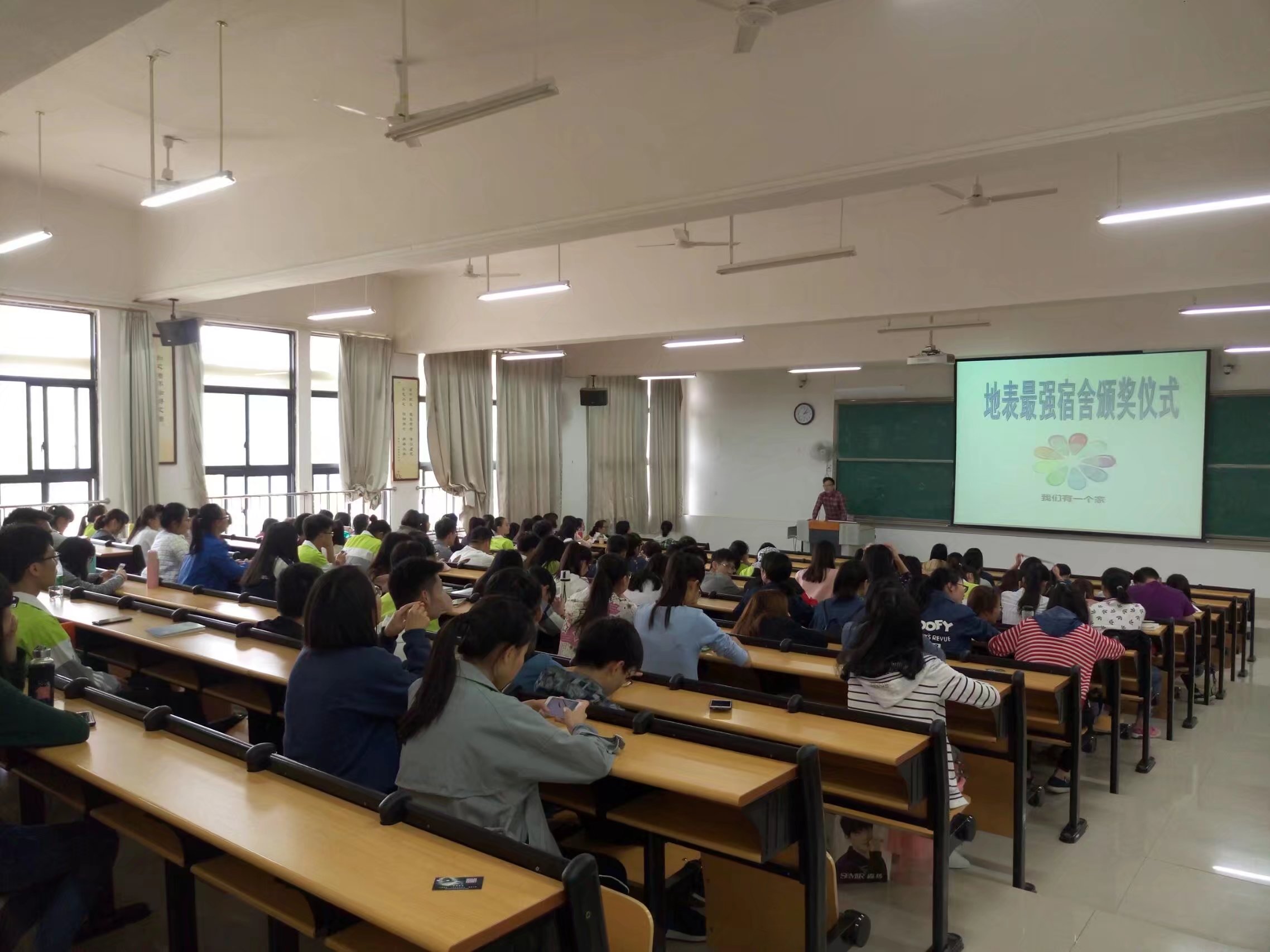 为积极响应校学工处(部)关于促进大学生宿舍文化建设,维护宿舍良好学风环境的工作要求,基础医学院为引导学生关注宿舍文化的建设,营造温馨的宿舍环境,增进室友之间的情谊,在院党委副书记龙春莉老师的指示下,基础医学院于4月1日至4月8日特开展2015级本科生“地表最强宿舍”评比活动,4月12日顺利进行基础医学院2015级本科生“地表最强宿舍”以及“地表最强舍友”表彰活动,基础医学院2015级辅导员和卫宾老师以及2015级各班班委、宿舍长以及学生代表参加本次表彰活动。