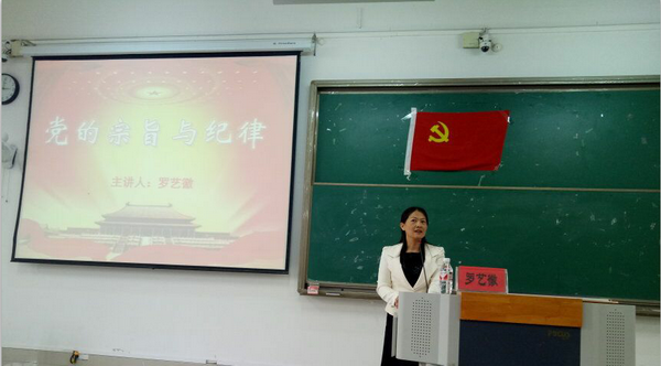 国际壮医医院党委副书记罗艺徽带领同学们学习“党的宗旨与纪律”