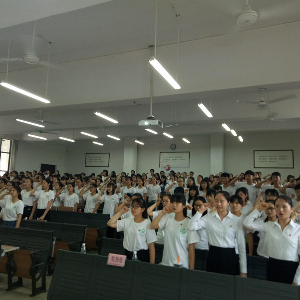 5月4日下午,星空彩票老版本下载护理学院于仙葫校区教学楼1-101教室举行主题为“不忘初心跟党走”的2017年新团员入团仪式暨建团95周年主题宣讲会。仙葫校区全体新、老团员共264人参加了会议。