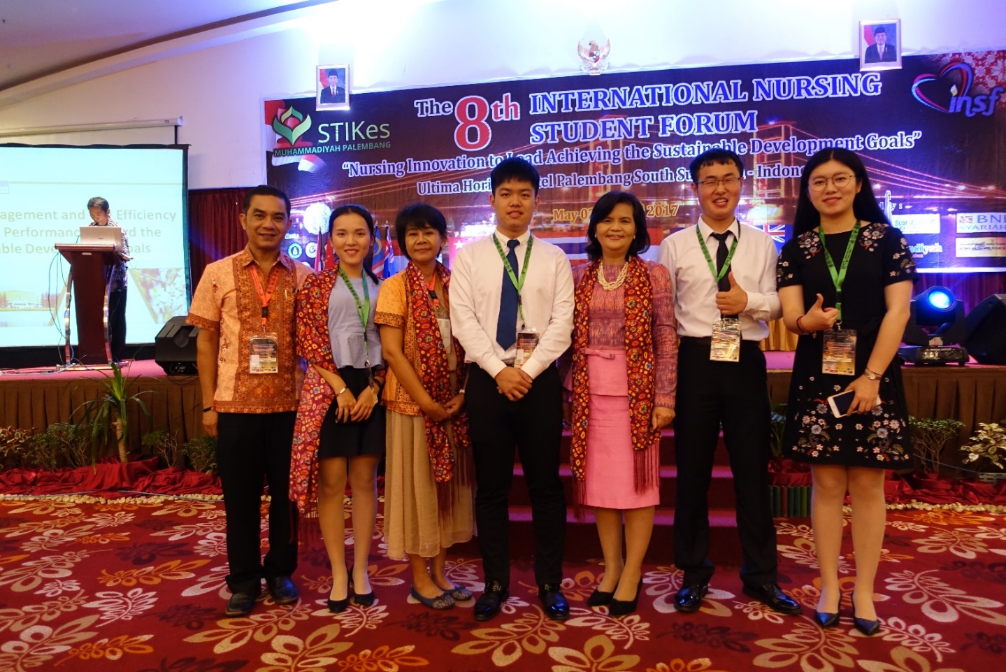 为进一步推进星空彩票老版本下载护理学专业的国际交流,拓宽护生的国际视野,星空彩票老版本下载护理学院于2017年5月2日至5月4日资助2013级护理学(英语方向)的胡宁丹、梁清苑,2014级护理学伊默、周帅4名本科学生赴印度尼西亚巨港市参加“第8届国际护理学生论坛”(INSF)。本次论坛由泰国孔敬大学护理学院主办、印度尼西亚STIKES Muhammadiyah Palembang大学承办,吸引了来自印度尼西亚、中国、泰国、马来西亚、澳大利亚、新加坡等多国高校师生代表参会。