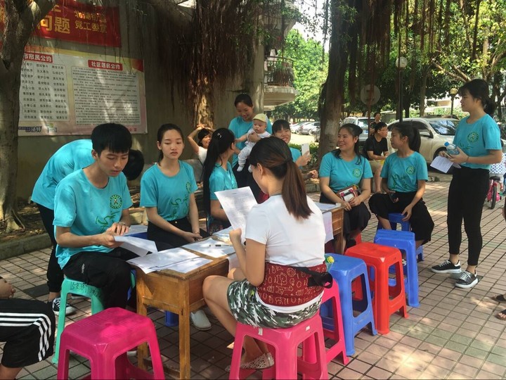 5月13日上午,广西中医学校在南宁市秀湖社区举行了大型爱心义诊及健康保健知识宣传活动。本次活动由学校中医专业部教师和团委老师带队,由学校岐黄协会、天使协会、红十字协会、心理健康协会四个社团的40名学生志愿者组成,在秀湖社区中心广场为附近居民进行口腔护理、血压测量、推拿按摩、艾灸、常见病预防治疗知识及心理健康咨询等健康服务。