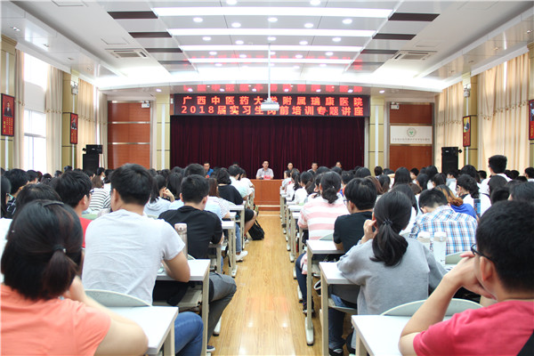 临床实习是医学高等教育重要的一环,是理论过渡实践的重要阶段,也是医学生做好未来职业规划的关键时期。为了让实习生在临床实习期的学习更有目的,迈好走向职业生涯的第一步,瑞康临床医学院于5月19-26日,在综合楼十楼教室开展了为期一周的2018届各专业新进点的200多名实习生岗前培训。医院院长唐友明,党委副书记、副院长陈日兰,副院长庞刚、韦思尊,党委副书记、纪委书记黄建民、副院长陈锋以及教务学生部全体老师出席实习生岗前培训会开班仪式。开班仪式由党委副书记、副院长陈日兰主持。