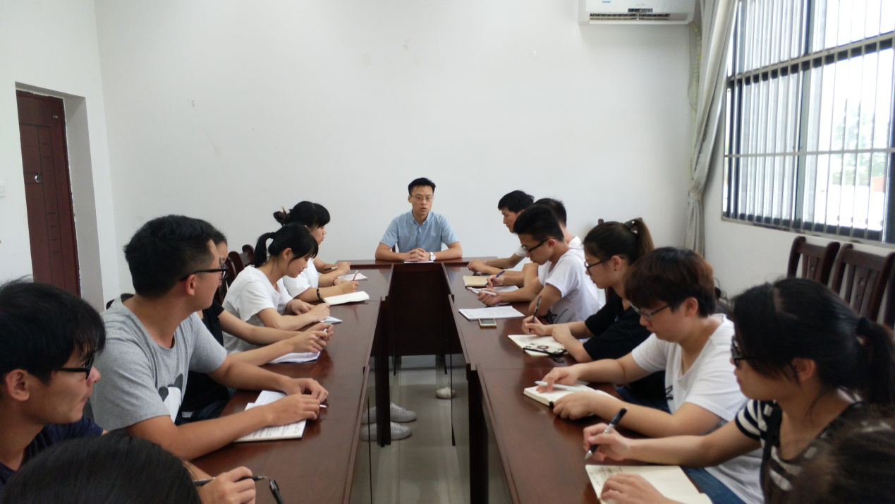 为了积极响应校组织部下发的《自治区党委组织部转发<关于认真学习贯彻习近平总书记重要指示精神广泛开展向廖俊波同志学习的通知>的通知》, 6月22日12:20在大学生活动中心A座104,我院学生党支部召开学习廖俊波同志先进事迹。本次学习活动由学生党支部书记宋南老师主持,全体学生党员参加了本次学习。