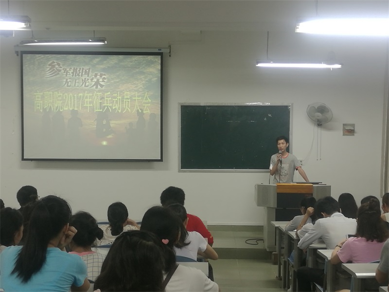 为响应全党、全军深入贯彻习近平总书记关于新时期国防建设重要讲话精神,鼓励我校优秀适龄学生依法服兵役,踊跃报名参军,投身火热军营,一展报国之志,2017年6月27日,高职院(中医学校)在仙葫、明秀、北湖校区一同开展了2017年优秀适龄学生征兵入伍宣传动员工作。
