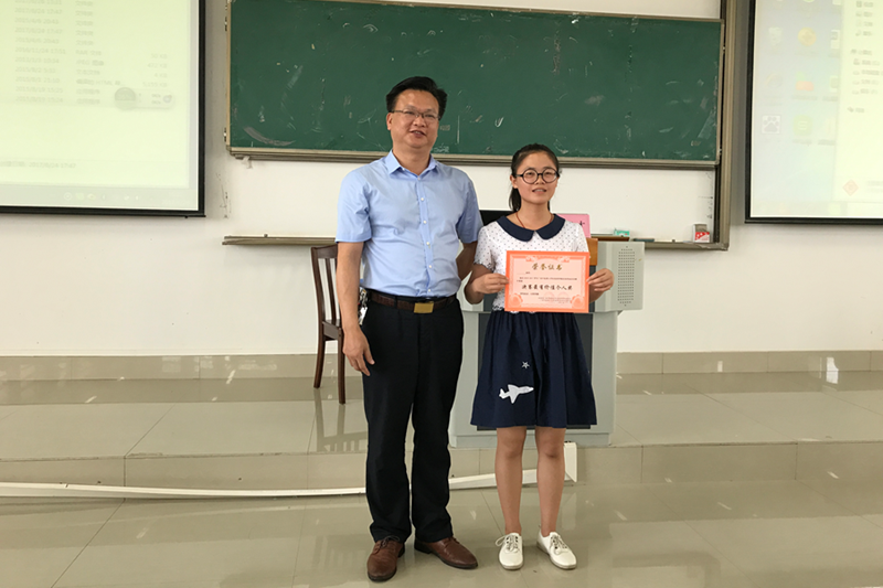 温海成老师向获得二等奖的小组颁发荣誉证书
