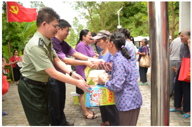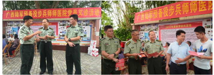 2017年7月1日,为庆祝中国共产党建党九十六周年,星空彩票老版本下载直属党委携手广西陆军预备役师医院组织党员深入基层,来到横县平朗乡双窑村开展义诊和慰问活动。学校直属党委韦艾凌书记、覃振林副书记,成教院党支部黄瑞诚书记,预备役师医院韦海雷院长,以及我校派出的“美丽广西”乡村建设(扶贫)驻村工作队员黄师阳,平朗乡林小志乡长、乡卫生院和武装部等当地领导参加了此次主题日活动。