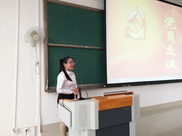 毕业生党员上台与大家交流自己的感想