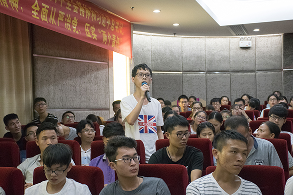 最后的互动环节,同学们踊跃提问,刘教授都有耐心地一一进行释题解惑,同学听后连连点头,刘教授的答疑解惑引来学生雷鸣般的掌声。