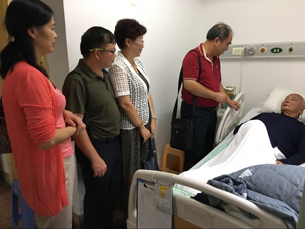 2017年9月25日,在中秋、国庆佳节即将来临之际,高职院(中医学校)院(校)长刘竑清、党总支副书记周琦,副院(校)长林原及相关部门负责人赴上海探望重病后在上海第一康复医院康复的退休职工那洪并亲切交谈。刘校长代表学院(校)领导、老师送上节日问候和祝福,同时送上慰问金,并关切询问他的生活起居和身体康复状况,希望他保重身体,一如既往地关心、支持学院(校)工作,为学院(校)发展建言献策。刘校长说:学院(校)从小到大发展到今天的规模,是历届老同志们的功绩,真诚地感谢老同志对学院(校)做出的贡献。刘校长也介绍了学院(校)取得的办学成绩和未来发展规划。