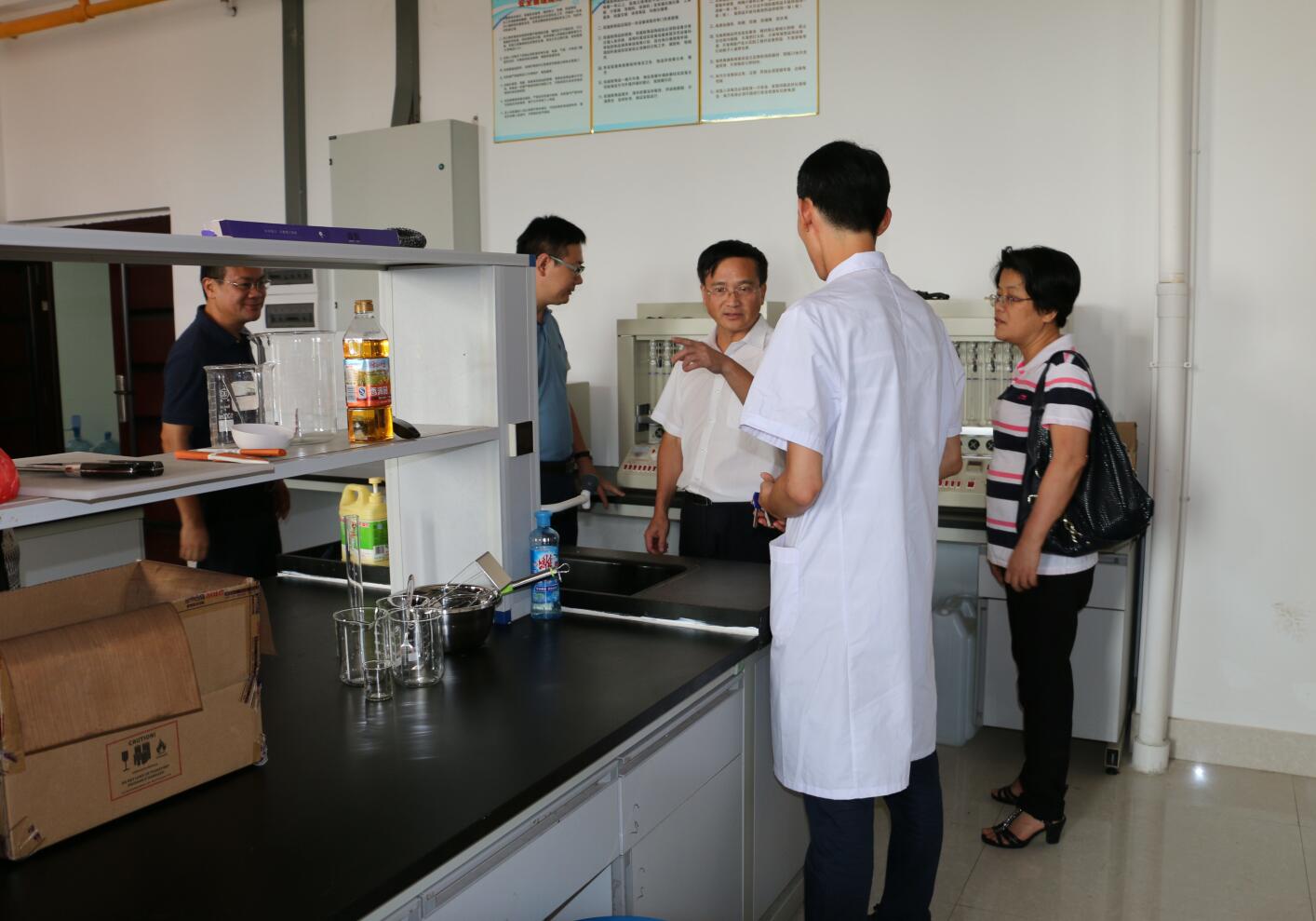 经检查,我院各实验室安全意识较强,整体上能严格按照规程规定开展工作,但是部分实验室也存在对实验室药品和器材的与杂物堆放在一起,实验室闷热不通风等安全隐患。针对这些现象,蒋林督促实验室管理员尽快完善安全责任体系、及时排除安全隐患。切实做到对安全隐患“零容忍,零死角”。