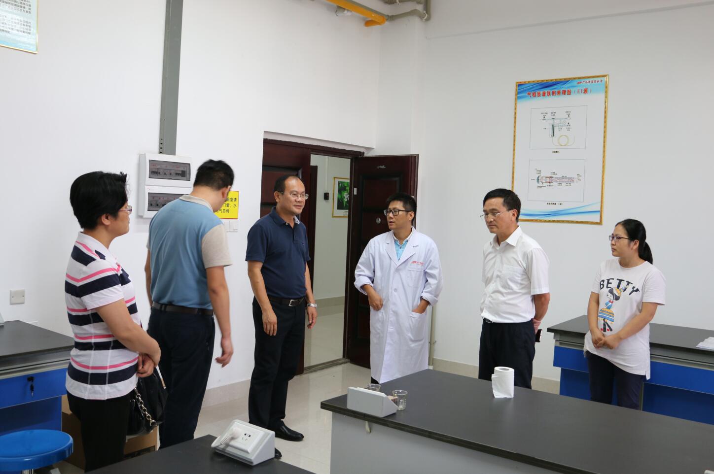 为迎接党的十九大胜利召开,营造稳定的安全教学环境。2017年10月12日下午,药学院党委书记蒋林、院长奉建芳、常务副院长赵立春、副院长卢汝梅、副院长秦华珍等药学院领导对药学院的实验室进行了细致全面的安全检查,药学院办公室、教务办相关人员陪同检查。