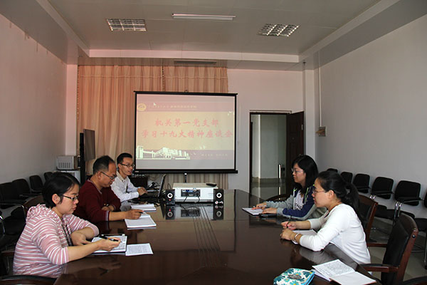10月27日上午,赛恩斯新医药学院机关党总支第一党支部在学院教学楼八楼院长会议室召开了十九大专题学习会,集中学习十九大报告,领会精神,分享个人心得体会。