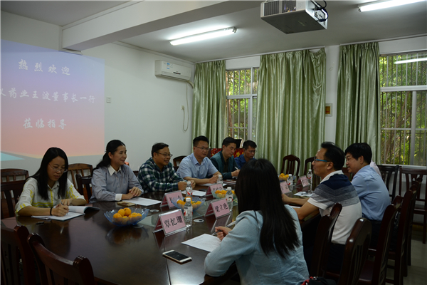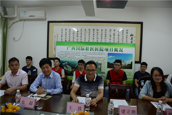 随后,为了加强双方的相互交流与沟通,蓝毓营介绍了壮医药学院的发展历史,韦英才介绍了广西壮药的发展与创新。最后双方就壮医壮药的市场前景以及药用功效进行了探讨交流。王波表示,壮医壮药作为民族医药,有极大的市场前景,希望能和壮医药学院开展进一步的产学研合作,共同推进民族医药的发展。