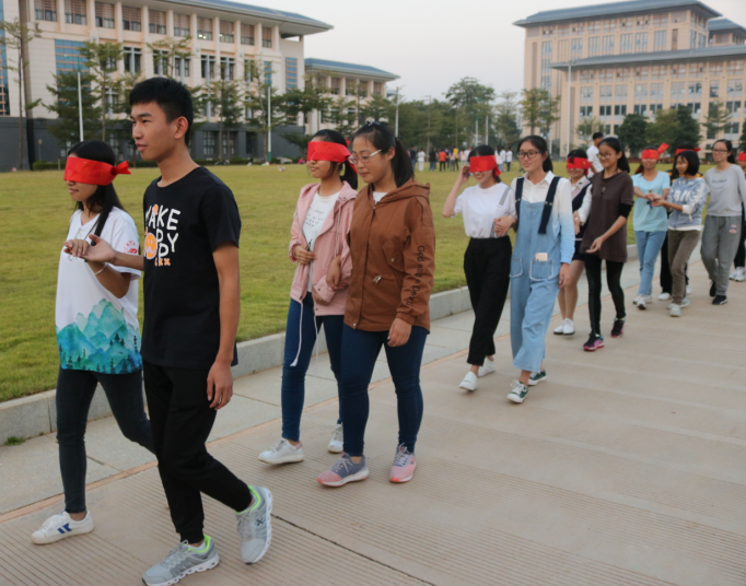 11月3日,为了庆祝十九大的胜利召开,在仙葫校区教学楼前面的草坪举行“庆祝十九大,青春向前行”为主题素质拓展活动,此次活动由和卫宾老师主持。素质拓展活动精彩纷呈,环环相扣,主要分为四个游戏环节:一、小鸡变凤凰;二、团队文化建设;三、盲人与哑巴;四、单人走绳索。在游戏中,团学成员每个人发挥潜质,相互协作,互相帮助,互相扶持,为团队的目标一起努力。游戏环节有助于支部成员的创造性和积极性的发挥,让彼此建立信任,在强大的凝聚力下实现双赢。这些游戏环节折射出的道理对支部成员今后在建立团队、融入团队、管理团队过程中有很大的帮助。
