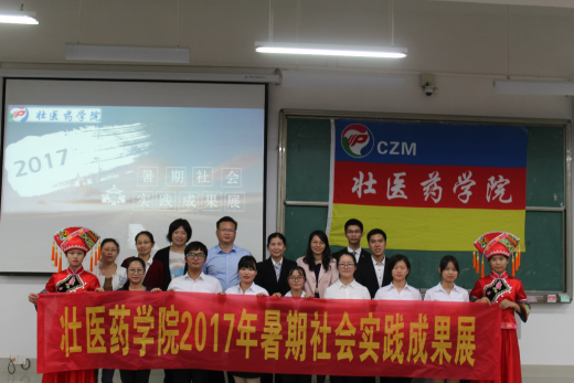 11月14日下午,由壮医药学院团委举办的2017年“青春喜迎十九大,不忘初心跟党走”暑期社会实践成果展示会在1-201教室举行。壮医药学院院长蓝毓营、副院长韦英才、副处级调研员韦杏,学办主任兰天莹、团委书记刘婷等领导及老师出席,实践团队代表以及各团支部的学生干部代表参加本次活动。
