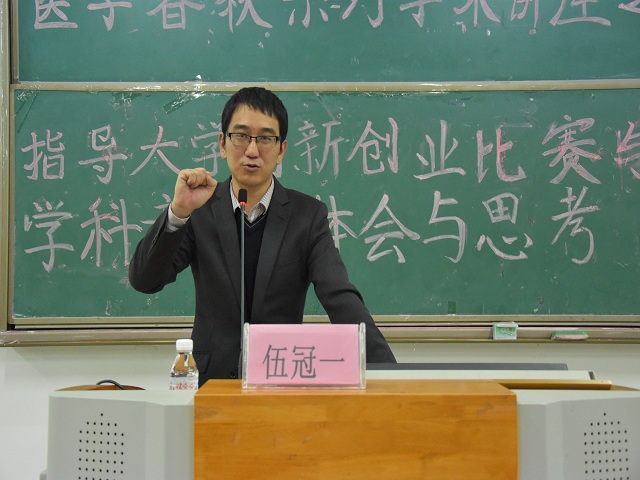 为了更好的指导同学们的大学生创新创业比赛、科学竞赛,丰富同学们的大学活动,激发同学们创新创业意识。2017年12月5日,基础医学院在仙葫校区教学楼1-101教室举办了以“指导大学创新创业比赛与学科竞赛的体会与思考”为主题的讲座,本次讲座由“星空彩票老版本下载2016年度十佳学生最喜爱老师”、基础医学院伍冠一老师担任主讲,基础医学院近350名学生参加了本次讲座。