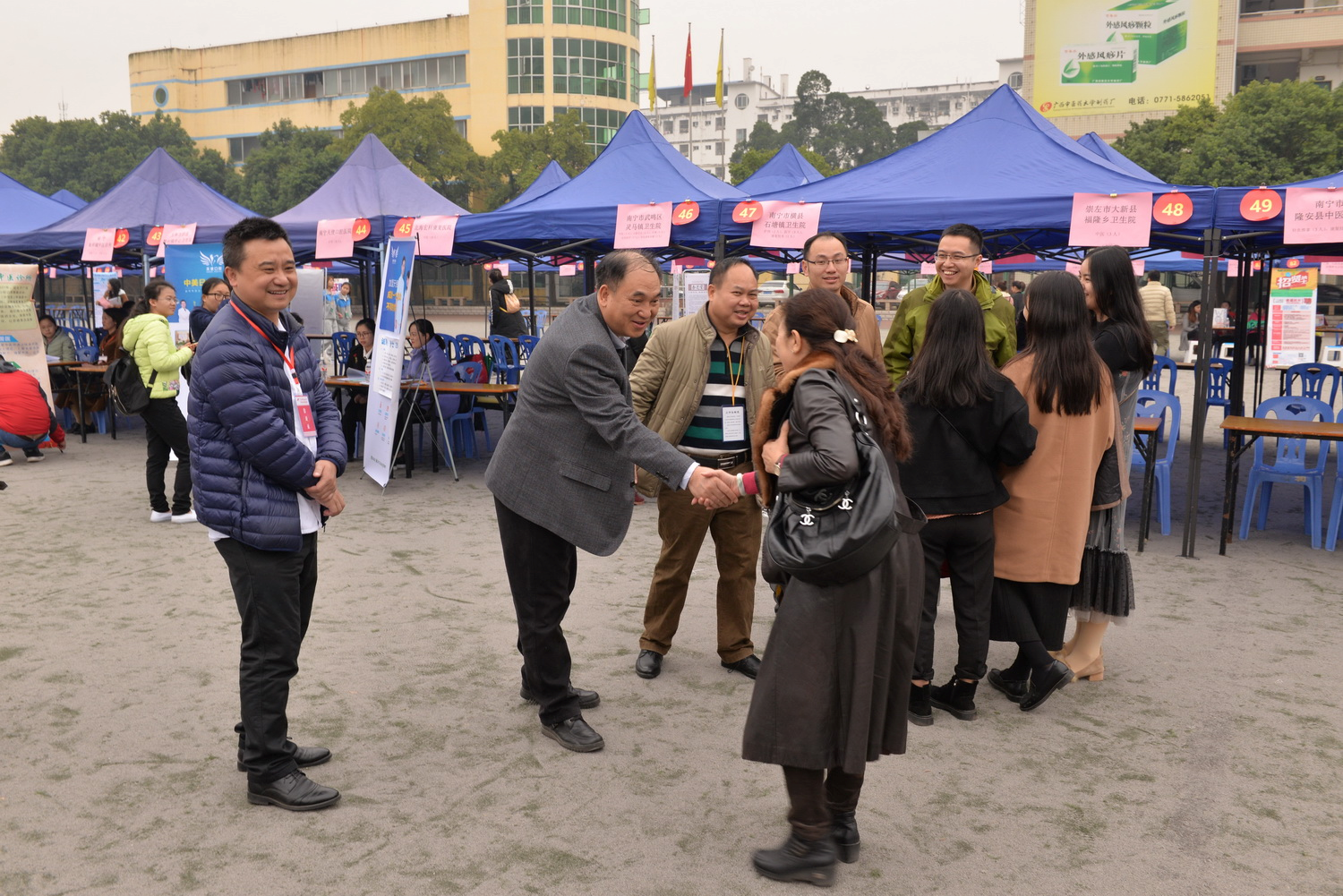 高职院、附设中医学校党委书记、高职处处长邓远美与用人单位亲切交谈