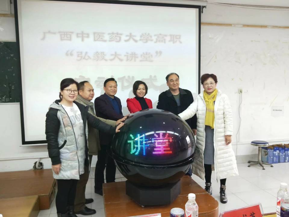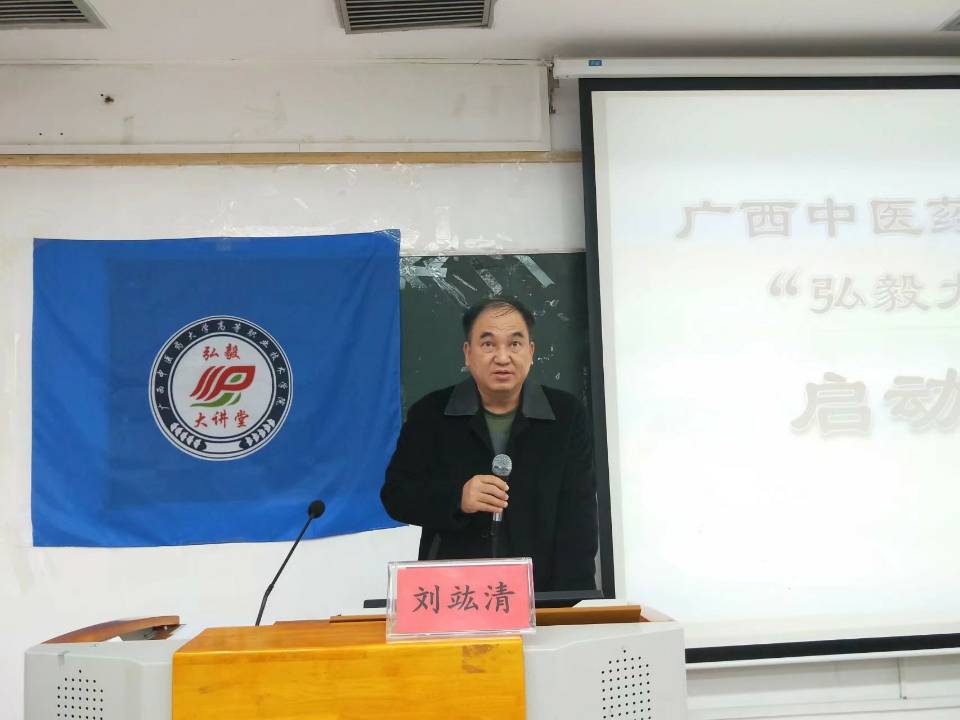 12月28日下午,高等职业技术学院“弘毅大讲堂”启动仪式在明秀校区举行。柳州桂中大药房连锁有限责任公司胡龙英副总经理、学校招生与就业处肖华业处长,高职院刘竑清院长、周琦副书记、黄勇副院长出席了启动仪式。