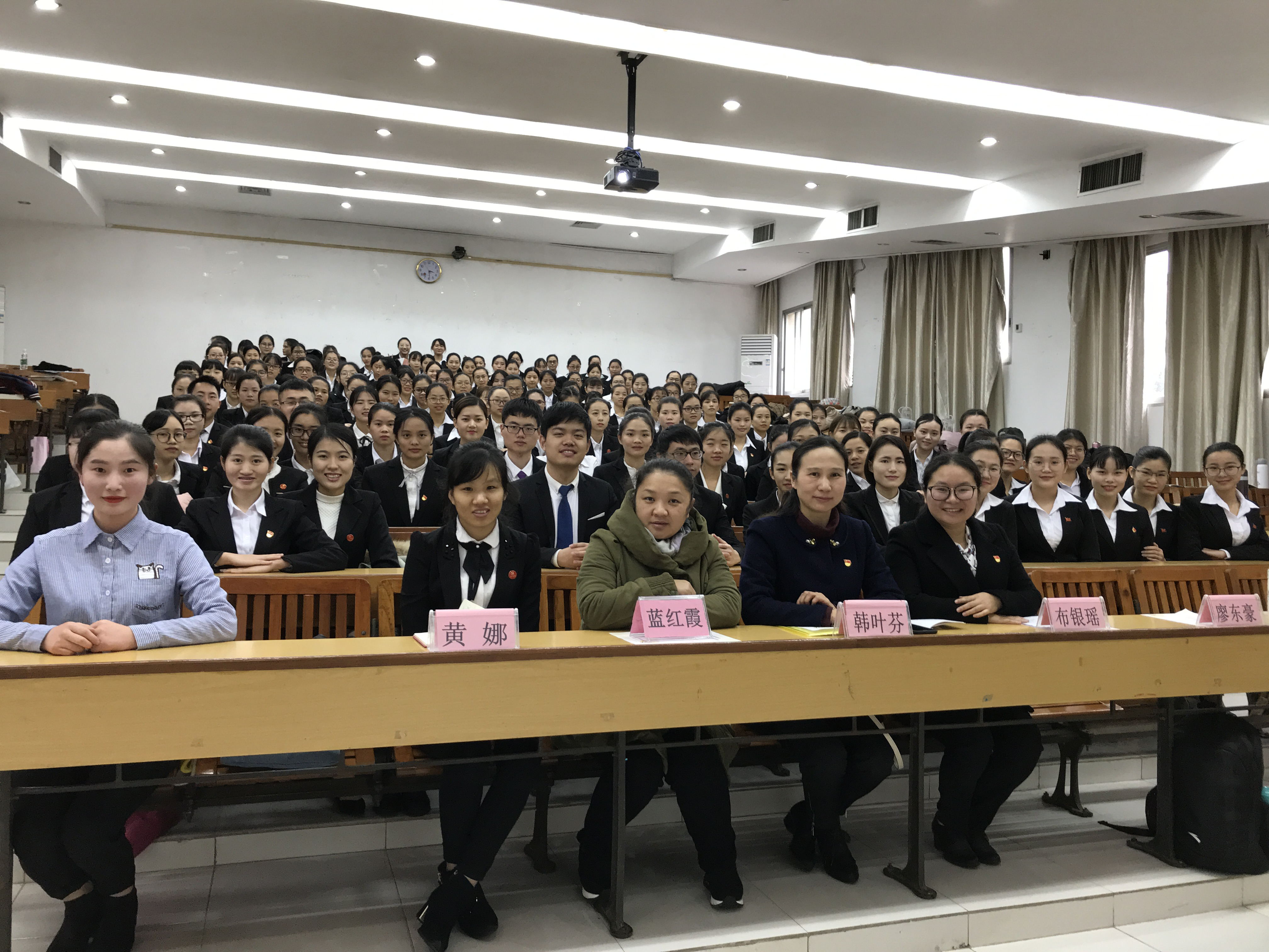 1月7日下午,星空彩票老版本下载护理学院学生党支部于明秀校区开展“中国共产党星空彩票老版本下载第二次代表大会精神汇报及学习十九大精神”组织生活会。护理学院党委副书记韩叶芬,护理学院学生党支部书记布银瑶老师,护理学院学工办主任蓝红霞老师,护理学院学生党支部委员廖东豪、黄娜老师出席本次大会。本次大会共有138名同志参加,其中正式党员30人,预备党员108人。