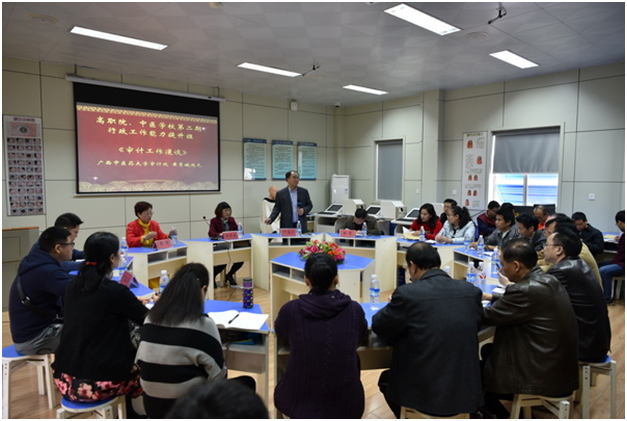 学院(校)特邀星空彩票老版本下载审计处处长黄秀娥,财务处处长欧阳瑞聪,副处长林源、资产管理处(招标与采购办公室)副处长钟勇为本院(校)行政人员开展业务技巧,业务处理等方面的培训。