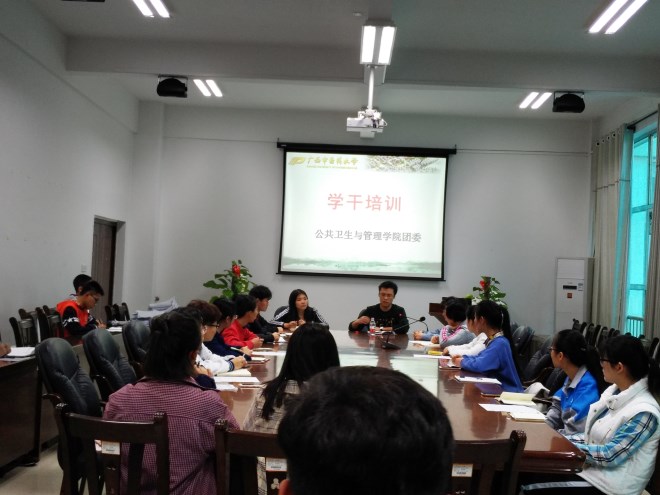 为了提高我院学干的综合素质,增强团干团队合作精神与凝聚力,公共卫生与管理学院于3月25日下午开展了学干培训活动。学生工作办公室主任宋南老师主持,团委书记鲁蕴律老师、各班班长、团支书参加了本次会议。