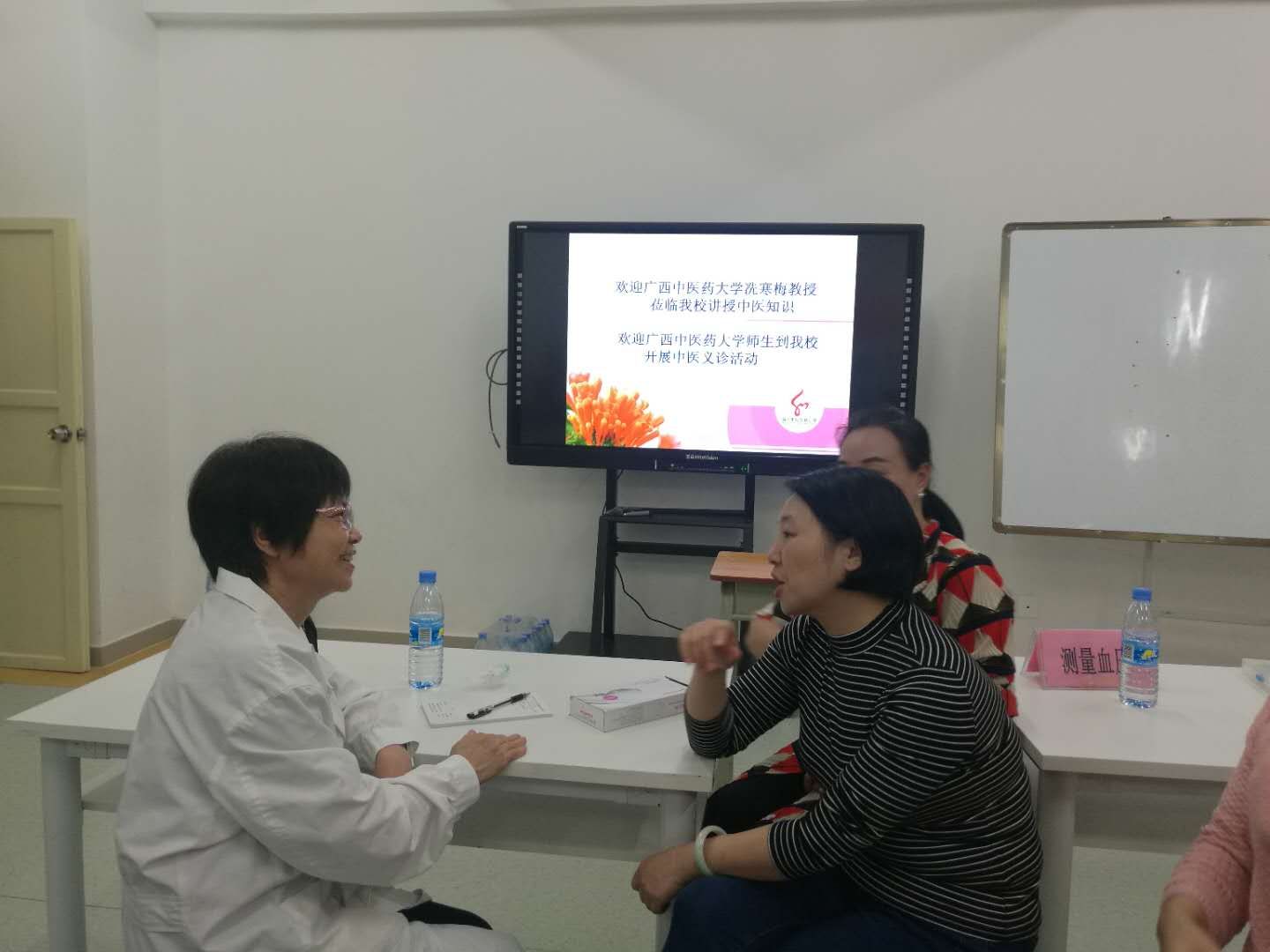 为更好地弘扬雷锋精神和博大精深的中医文化,3月28日高等职业技术学院团委组织大学生志愿服务队赴南宁市民乐路小学开展中医文化进小学进校园活动。此次活动邀请我校冼寒梅教授为民乐路师生讲解中医文化和现场诊疗,志愿服务队的同学为广大师生提供现场量血压、测血糖、推拿按摩和艾灸等服务。