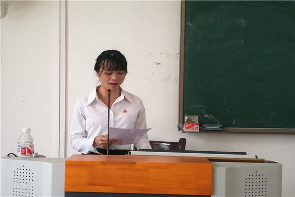 会议伊始,由壮医药学院团委学生会的相关负责人及各前任部长对本学年的工作进行总结,并对新一届团委学生会学生干部提出相关工作要求。壮医药学院团委书记刘婷对本学期各部门工作总结进行点评,对新一任团委学生会学生干部提出殷切寄语,并向各位16级团委学生会学生干部颁发聘书。